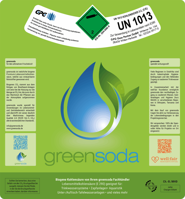 Biogene CO₂-Kohlensäure von greensoda steht für eine neue Generation von verantwortungsvoller Ressourcennutzung in der Lebensmittel- und Getränkeindustrie.