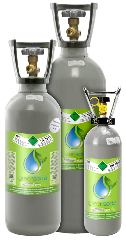 Ab sofort gibt es greensoda auch in Mehrwegflaschen mit 2 kg, 6 kg und 10 kg CO2
